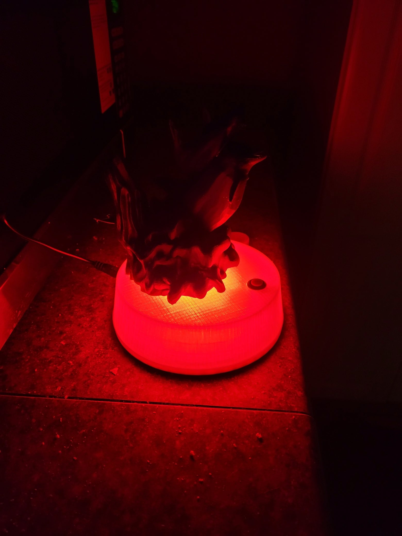 Dolphin lamp colored with its baby powered any regular 5volts cell phone adapter.